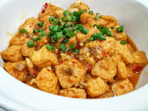 Pan-fried Beancurd Cubes served with Light Oyster Sauce
