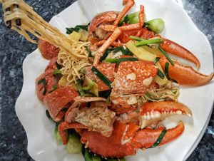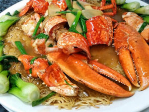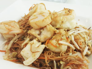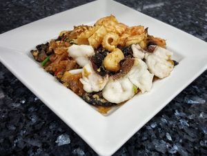 Fried Kuay Teow with Assorted Seafood Served in Egg Sauce